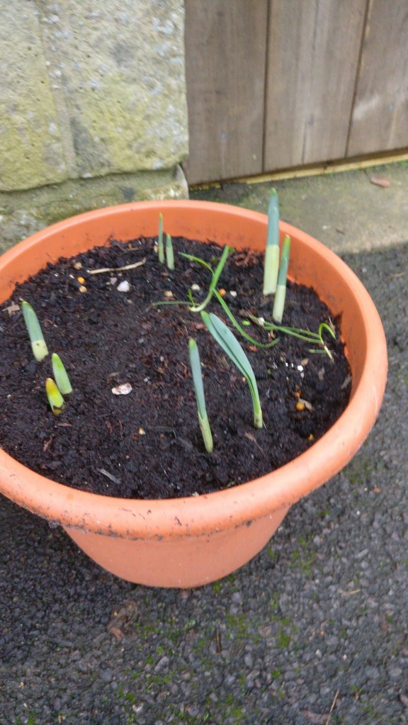 Today’s image is of some bulbs starting to poke up through the soil, giving us all optimism of warmer days ahead.