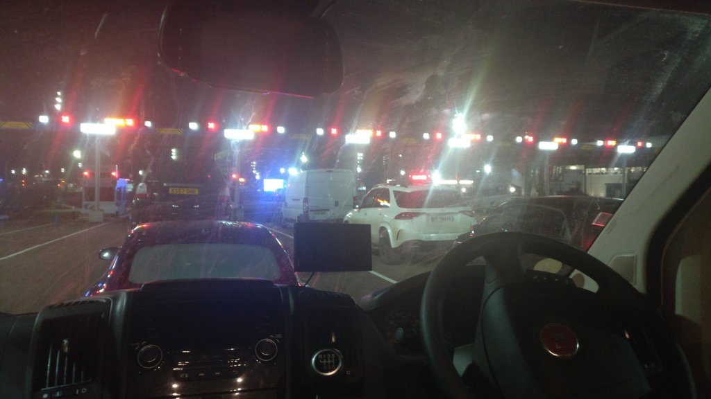 We’re off for a little jaunt around Europe, waiting for the ferry to board.