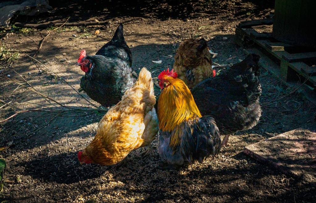 Today’s picture features our chickens, most of the hens are old, and no longer lay that many eggs, but we let them retire in peace, to thank them for their eggs when they were laying.