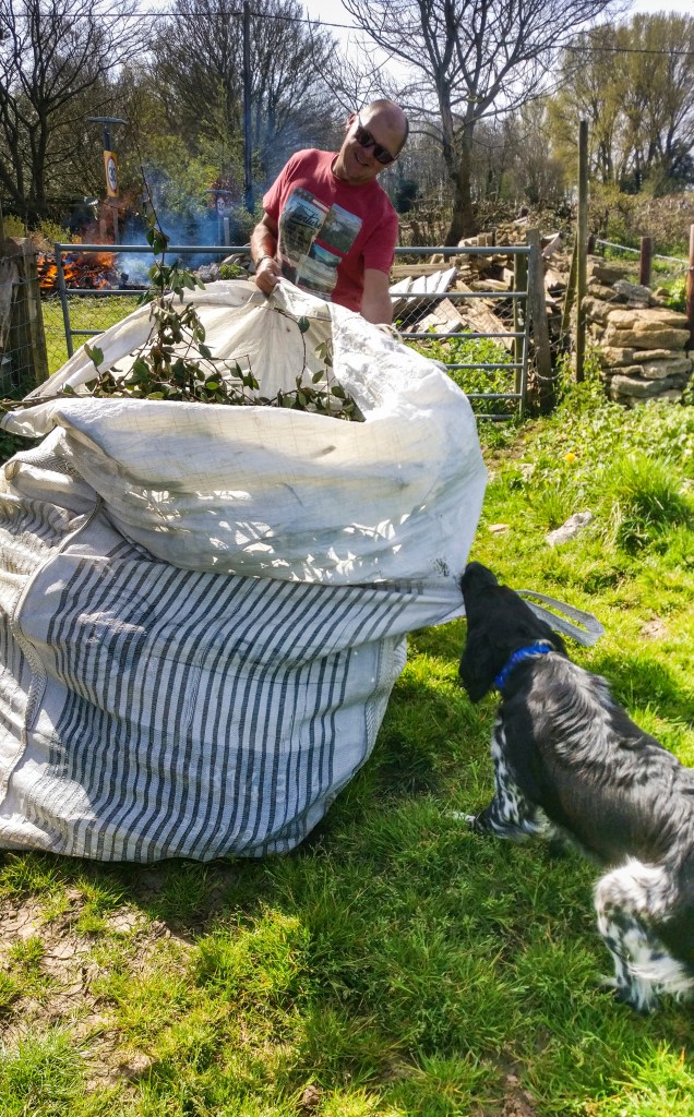 One of our lovely neighbours had started a bonfire and had asked if we had any rubbish that we needed to get rid of as all of the recycling centres are closed due to Corona Virus (keeping a safe distance obviously). We gratefully accepted, and started to drag the hedge trimmings to the fire, but Alfie had other ideas.