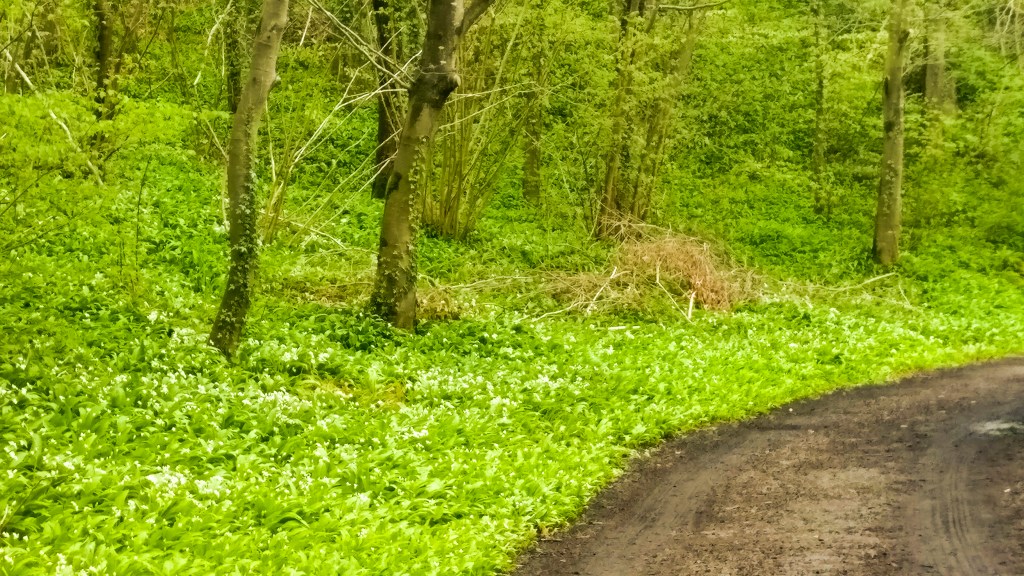 Today’s post is inspired by the dog walk and photo below. We went through some woods filled with wild garlic, just coming out in white flowers.