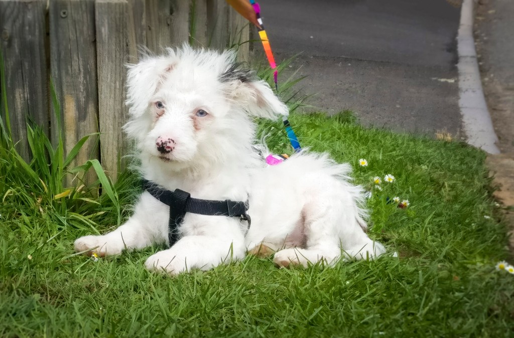 Well, we had a treat today. Whilst working our in the front garden Jayne and Nigel walked by (keeping 2m away) with their new little terrier/poddle/etc pupster called Monty. At just 14 weeks old, he is very cute.