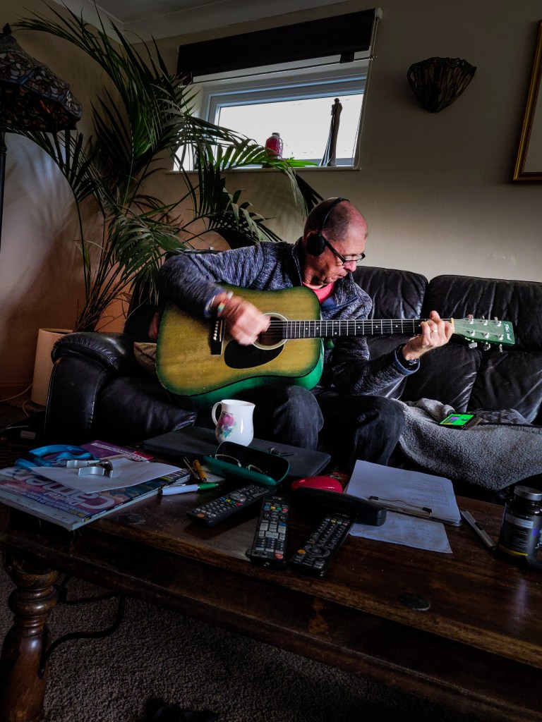 If you look closely you can see a headset plugged into my phone. I have dabbled with the guitar for quiet a few years (on and off), but figured that it might be a good time to start playing again.