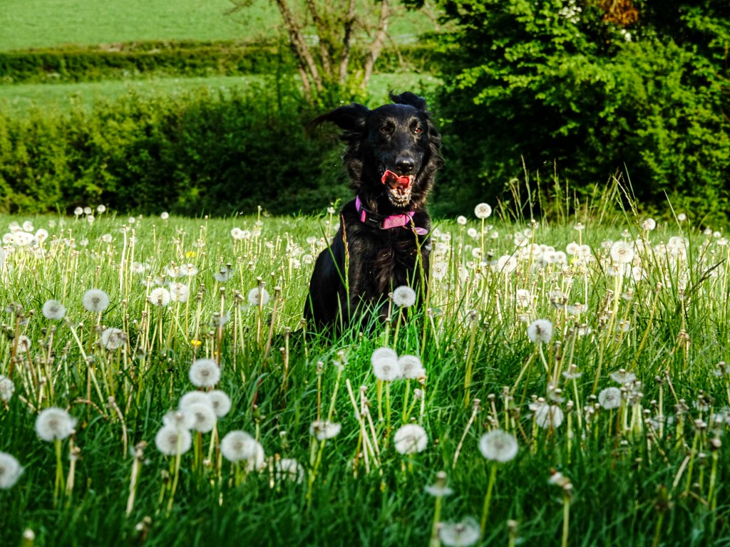 Today’s post features our nutty flatcoat retriever, Velvet. This picture sums her up perfectly, and she is still going strong at nearly 11 years old.