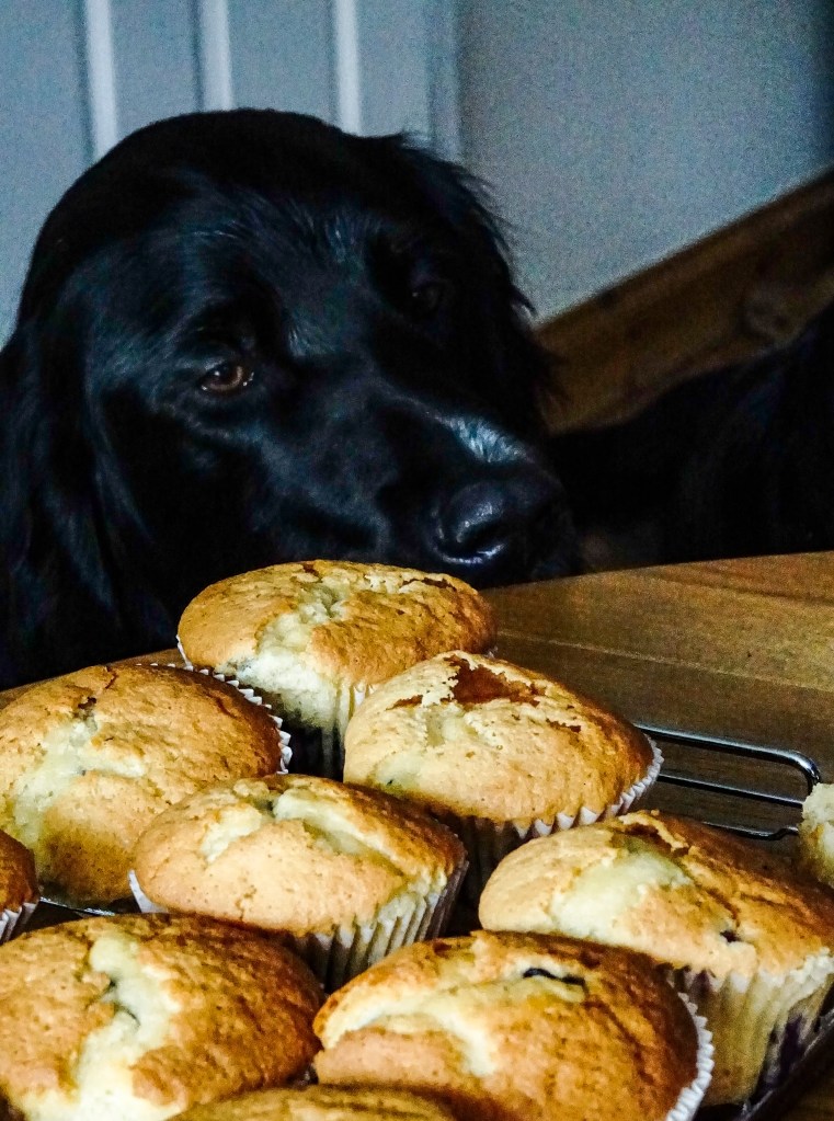 After much observation, this syndrome seems to be triggered by nice smells coming from ‘uman foodz’ to quote Alfie. This was his excuse when a tray of blueberry muffins were removed from the oven, and he needed to rest his fat head on the table.
