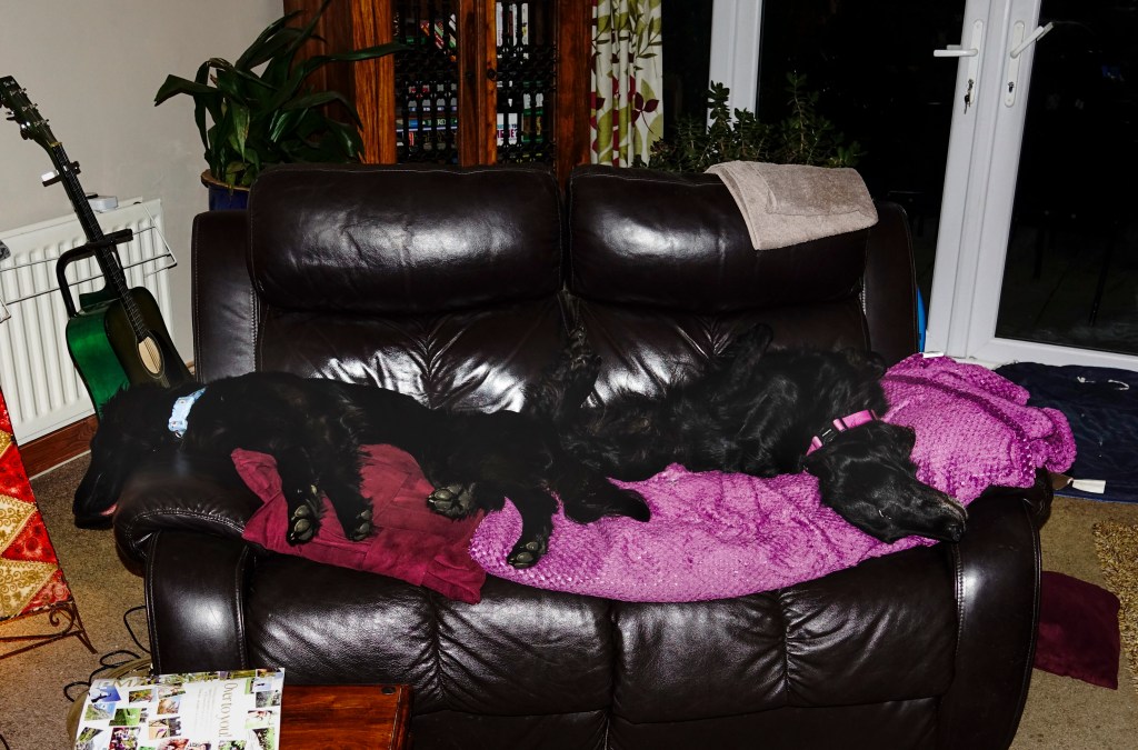 Flatcoats are renowned for sleeping in weird positions but we won’t have it any other way.