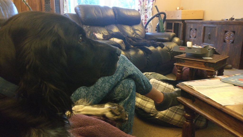 Alfie is fascinated by the sounds coming from the TV whilst watching Spring Watch.