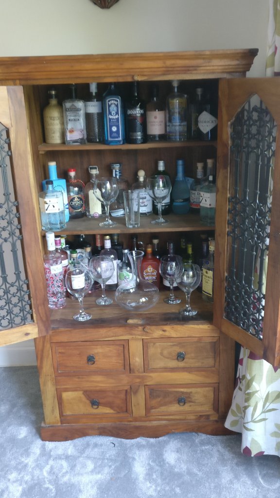 We also took the opportunity to de-clutter and move some stuff around. Today’s picture is of the new home for my Gin collection, which grew significantly over the weekend, thanks to gifts from dear friends and family for my birthday.