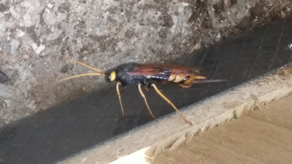 I have no idea what it is (possibly giant wood wasp or giant Horntail), but I certainly wasn’t going to upset it. It was more than twice the size of a wasp. Thankfully it buzzed off 🤣…..