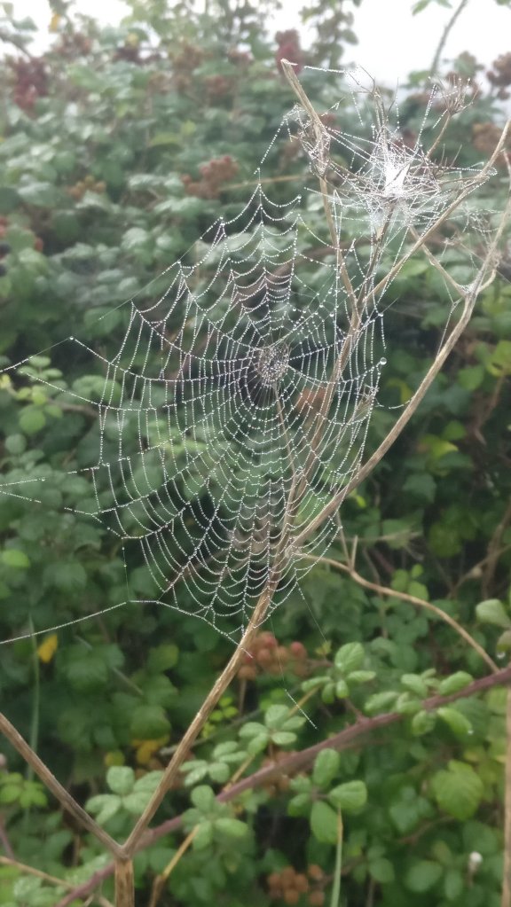 Some lovely webs around on the woofer walk this morning.