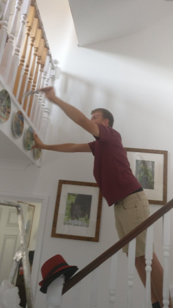 Denise (in her infinite wisdom) decided to paint the spindles on our staircase (85!!), but there’s some that are a tad difficult to reach.